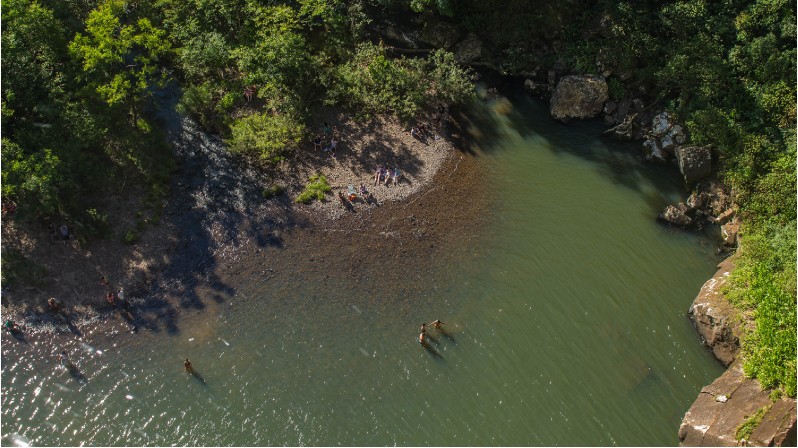 Ao chegarmos à cidade, vamos fazer a Trilha das Três Quedas, que guia até a bela cascata que forma uma refrescante piscina natural (1,6 km. +-30min. Ida e volta). Depois de aproveitarmos a cascata, iremos almoçar no Camping Chuvisqueiro. Sugerimos que cada um leve seu próprio lanche para realizar um piquenique ou compre os lanches disponíveis na lancheria local.