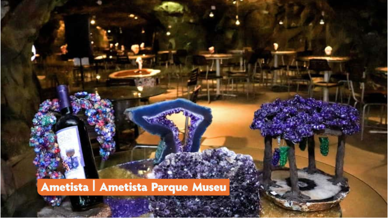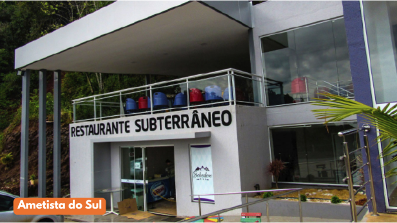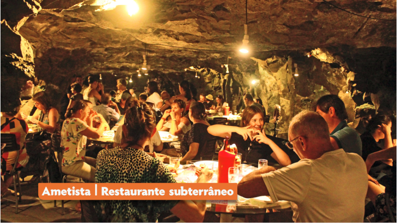 Para o almoço sugerimos o lindo restaurante subterrâneo que foi construído dentro de uma mina desativada em Ametista do Sul. O custo médio do almoço é R$85,00.