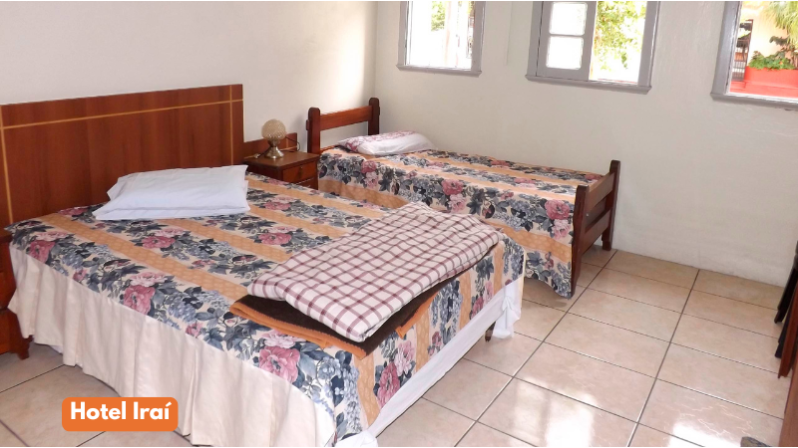 - Hospedagem em quartos coletivos até 04 pessoas. Acomodações no Hotel Iraí, Balneário ou similar;